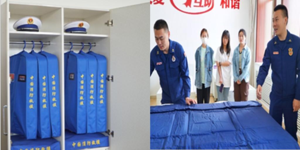 其次,宿舍消防安全在高校学生安全工作中至关重要,由消防员带领同学们参观消防救援队宿舍,展示了安全整洁的生活风貌,更重要的是以身作则提醒同学们从电器使用、火种使用、杂物堆放等方面注意宿舍消防安全。