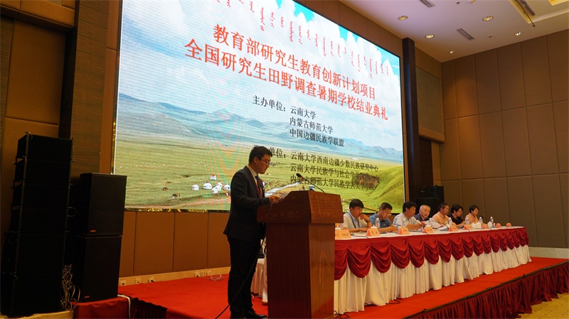 8月13日上午 9点,由云南大学、pp电子、中国边疆民族学联盟主办,云南大学民族学与社会学学院、pp电子承办的“教育部研究生教育创新计划项目全国研究生田野调查暑期学校(第十一期)”结业典礼在pp电子隆重举行。一百多位顺利完成在内蒙古自治区9个调研点田野调查的全国各高校、科研院所的硕士、博士研究生参加了本届“田野调查暑期学校”结业典礼。