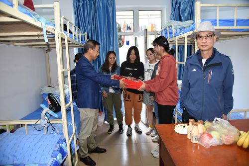 今天正值中秋佳节,为了表达对新入学同学的欢迎和关爱,消减新生的思乡之情,在中秋佳节来临之际pp电子官网特举行了中秋慰问活动。参加本次活动的领导有pp电子党总支书记白铁柱老师、院长乌日陶克套胡教授、党总支副书记(副院长)姚文帅副研究员、团总支书记朱苏道老师、学生工作与就业办主任包双成老师和2019级本科生班主任乌木花老师。