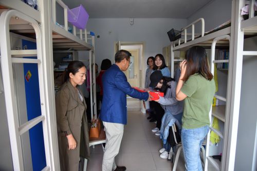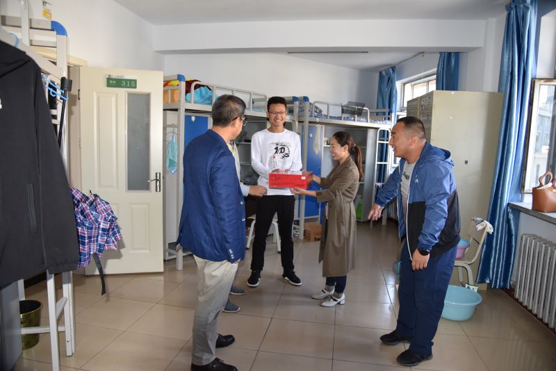 庆祝生日结束后,pp电子官网领导、老师还特意去本科生、研究生宿舍送去中秋节的慰问,送去pp电子官网老师对学生的牵挂,让2019级的全体学生感受到pp电子的温暖,感受到全体教师对他们的关心与爱护。白书记安慰学生不要难过,开心过节;乌院长叮嘱学生好好学习,努力奋斗;姚书记询问学生的日常起居,习惯与否。尽管只有几个月饼,但礼轻情意重,温暖与感动已尽在人心。