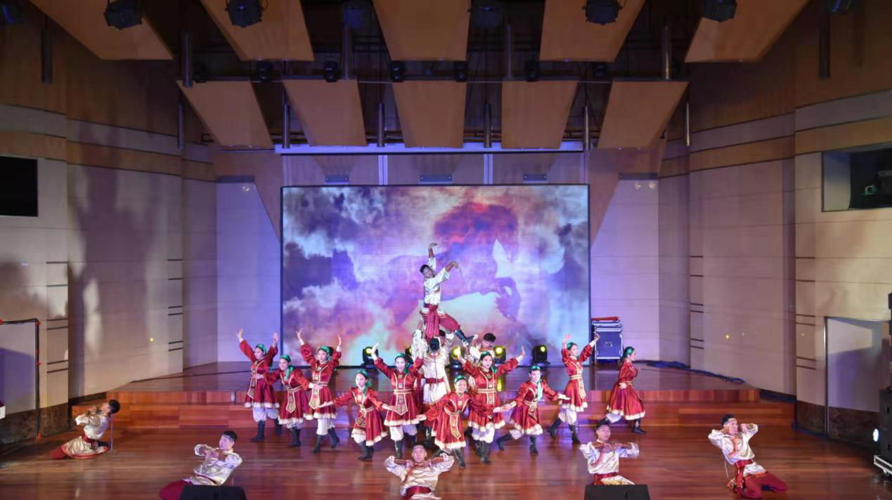 掌声响起,期待已久的庆祝新中国成立70周年暨2019级“菁华新梦”主题迎新晚会在激情四射的开场舞《蒙古马》中拉开了序幕。