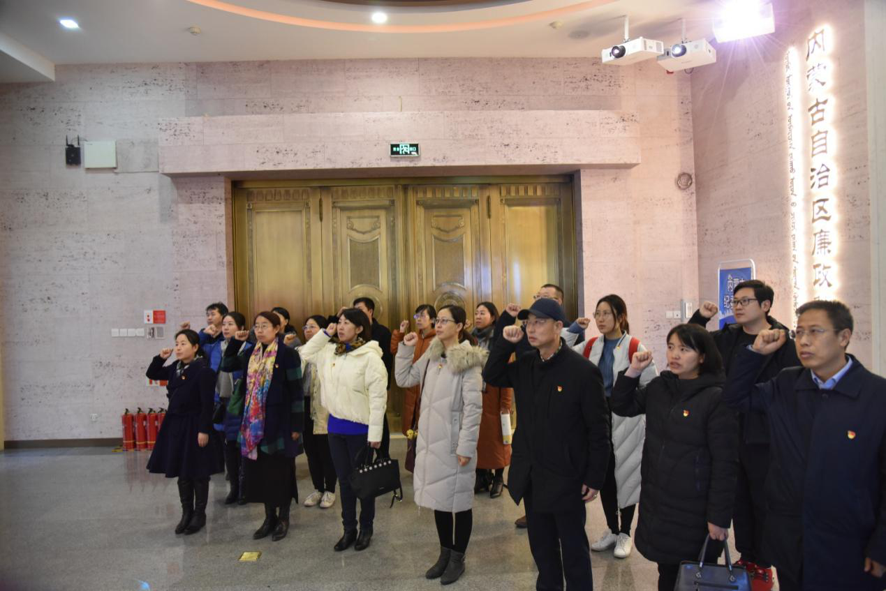参观学习结束后,pp电子与经济管理学院、继续教育学院的老师们在内蒙古自治区廉政教育展厅内举行了重温宣入党誓词仪式。