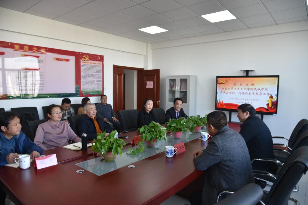 3月22日下午,西南大学历史文化学院民族学院罗庆昌书记、田阡教授一行应邀来pp电子官网考察指导,并在pp电子官网田楼611党建活动室举行座谈会。pp电子官网参加座谈会的有:党总支书记包凤兰、院长乌日陶克套胡、副书记副院长阿荣、副院长满达以及总支委员王瑞军、总支委员杨冰华、教工支部书记双金、行政支部书记包双成、学生支部书记朱苏道等。
