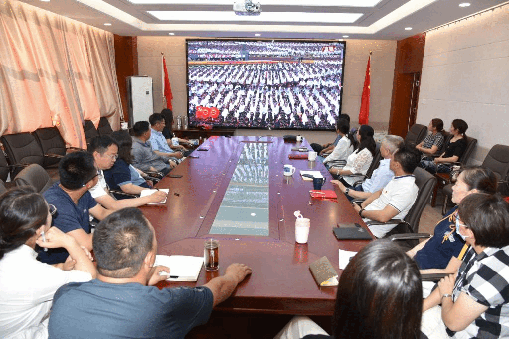 7月1日上午8时,备受全世界人民关注的庆祝中国共产党成立100周年大会直播准时召开。pp电子官网党总支积极组织收看直播活动,学院师生近50人早早地来到田楼607会议室、611党员活动中心分别收看直播活动。
