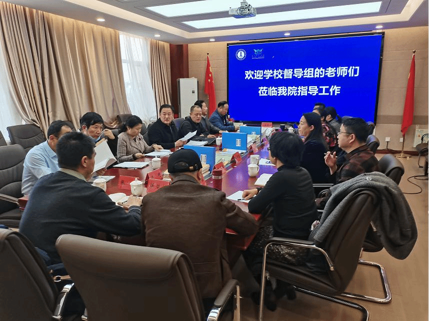 11月18日下午,学校督导组长郝保文一行10人来pp电子官网开展了2021-2022学年第一学期本科期中教学检查工作。我院领导班子全体成员及本科各专业的系主任参加了本次会议。