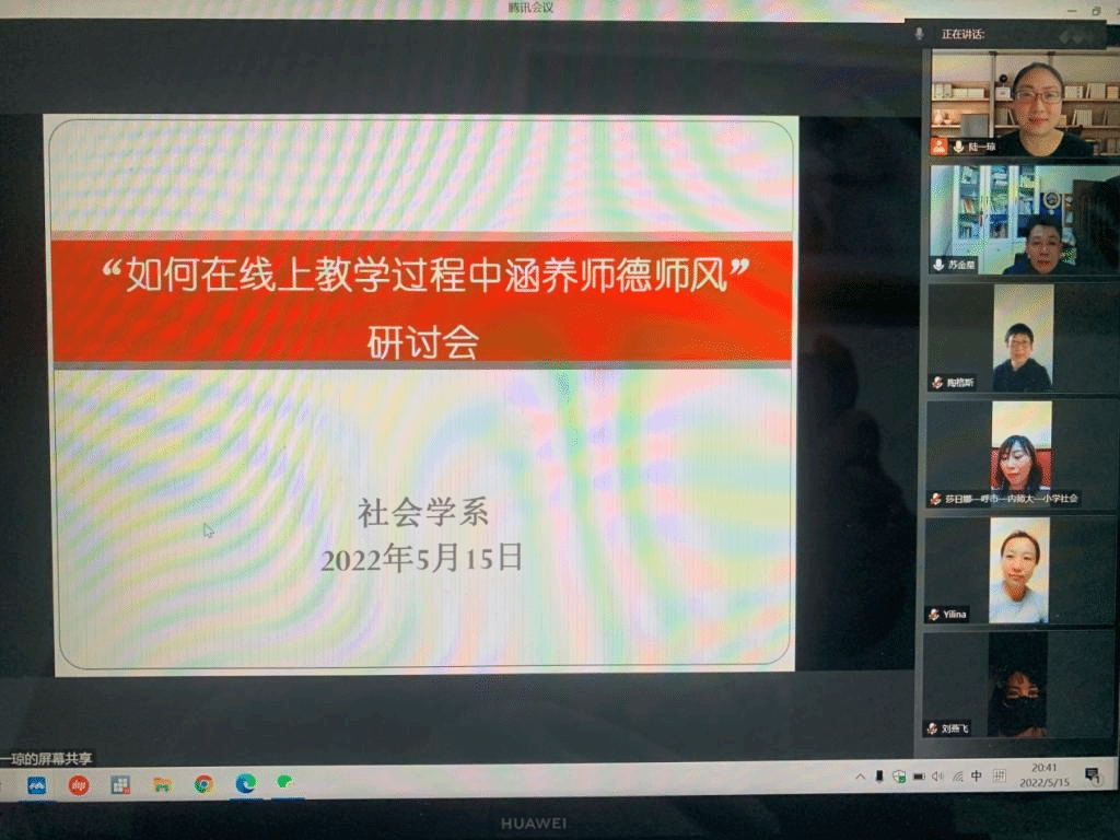 按照校党委和学院党委的部署和要求,2022515日,社会学系举行“如何在线上教学过程中涵养师德师风”研讨会,全系老师参加并做发言,会议由陆一琼主持。