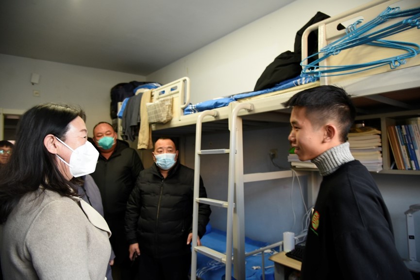 新学期如约而至,迎着昭雪,踏着初春。这是疫情结束后第一个新学期。2月19日,pp电子官网党委书记包凤兰,学院副书记、副院长阿荣,团总支书记姜鑫,学工办主任包双成一同走访学生宿舍看望返校学生。