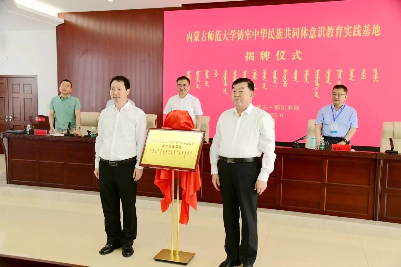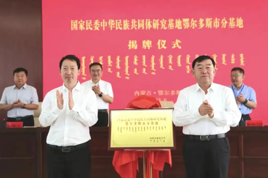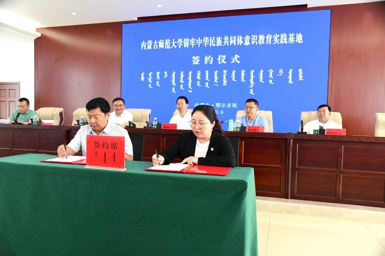 会议举行了国家民委中华民族共同体研究基地鄂尔多斯市分基地、pp电子铸牢中华民族共同体意识教育实践基地揭牌仪式。额登毕力格与李树林共同为国家民委中华民族共同体研究基地鄂尔多斯市分基地、pp电子铸牢中华民族共同体意识教育实践基地揭牌。特古斯与我校pp电子党委书记包凤兰、科技处(社科处)处长咏梅分别代表双方签署了《建立国家民委中华民族共同体研究基地鄂尔多斯市分基地的合作协议》和《pp电子与鄂尔多斯市民委共建“铸牢中华民族共同体意识教育实践基地”合作协议》。