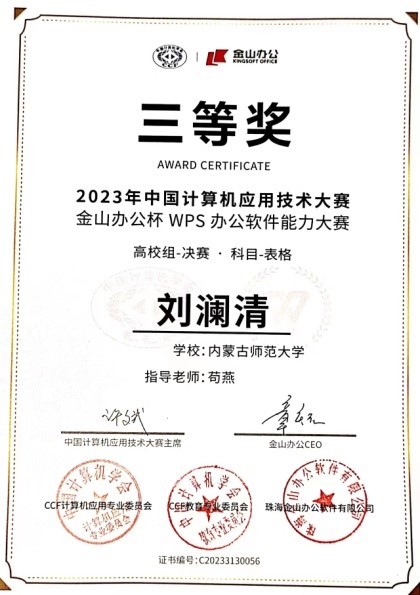 pp电子官网2022级社会学3班刘澜清同学在学校选拔赛中荣获“表格赛道”第一名,并被选派代表学校参加了全国总决赛。在全国总决赛中,我校荣获高校组团体第六名,刘澜清同学荣获高校组“表格赛道”个人三等奖。