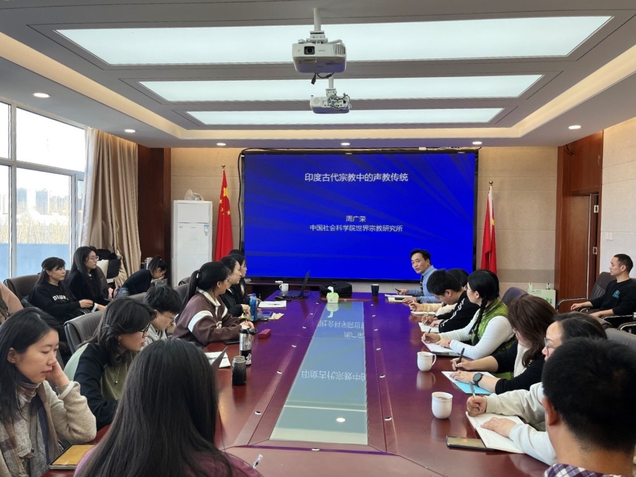第二场讲座题为“梵学何为:基于概念、经典体系与学术史的考察”。周广荣研究员分别从“梵学释义、梵学经典分类、中国梵学研究史的考察与反思、印度教特性与宗教中国化”四个不同视角阐释了梵学博大精深的内涵、梵学研究的学术价值与现实意义,展望了中国梵学研究大有可为的前景。