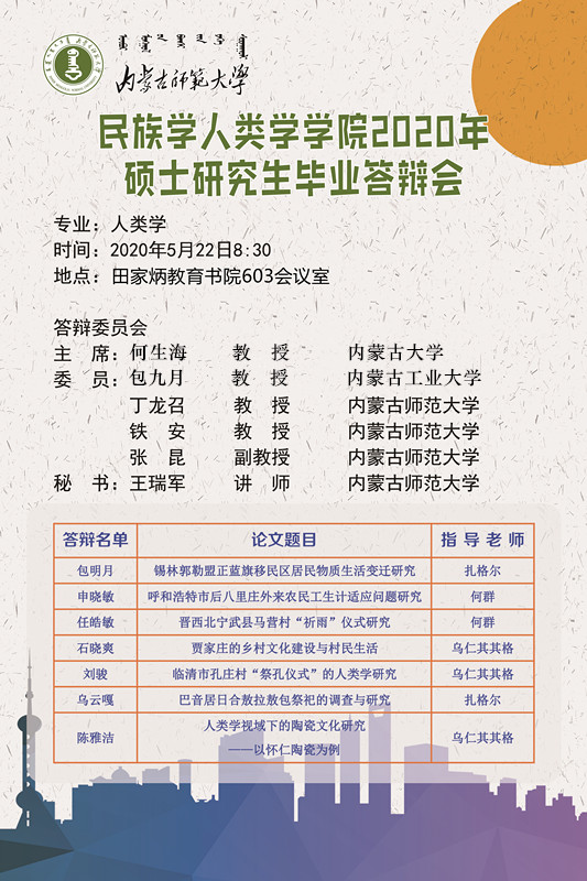 关于2020届人类学专业硕士研究生毕业论文答辩的通知