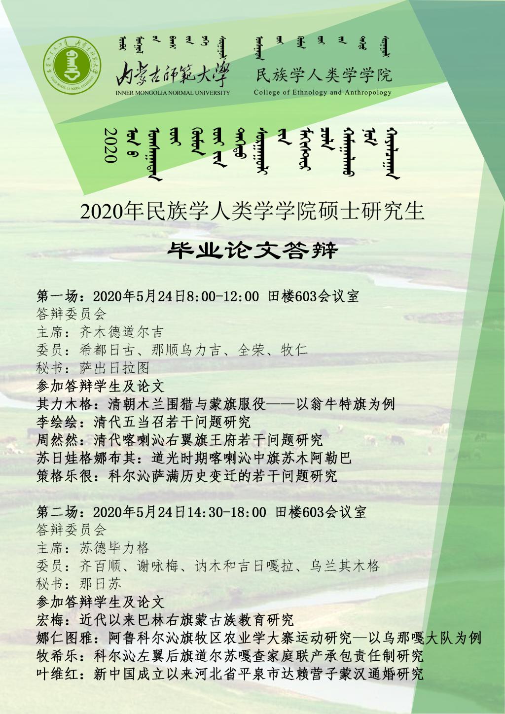 关于2020届中国少数民族史专业硕士研究生毕业论文答辩的通知