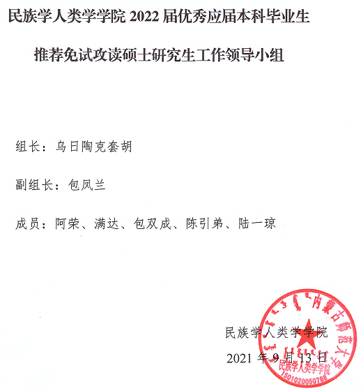 附件1:民族学人类学学院优秀应届本科毕业生推荐免试攻读硕士研究生工作细则
