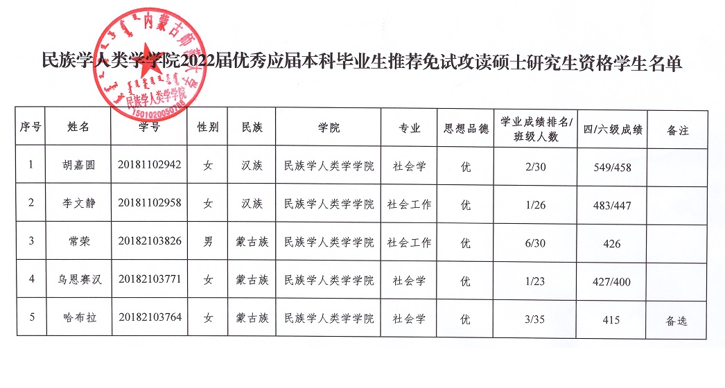 为保障推荐优秀应届本科毕业生免试攻读硕士学位研究生(以下简称推免生)工作的顺利发展,促进本科教学质量的提高,根据《pp电子推荐优秀应届本科毕业生免试攻读硕士学位研究生工作实施办法(修订)》(内师校发【2020】52号)文件精神,结合学院实际,pp电子成立了2022年优秀应届本科毕业生推荐免试攻读硕士学位研究生工作领导小组,制定了推免工作细则,评选出了获得2022年pp电子推荐免试攻读硕士研究生资格的学生及预备推荐免试攻读硕士研究生资格学生名单。现予以公示,具体内容请见附件。