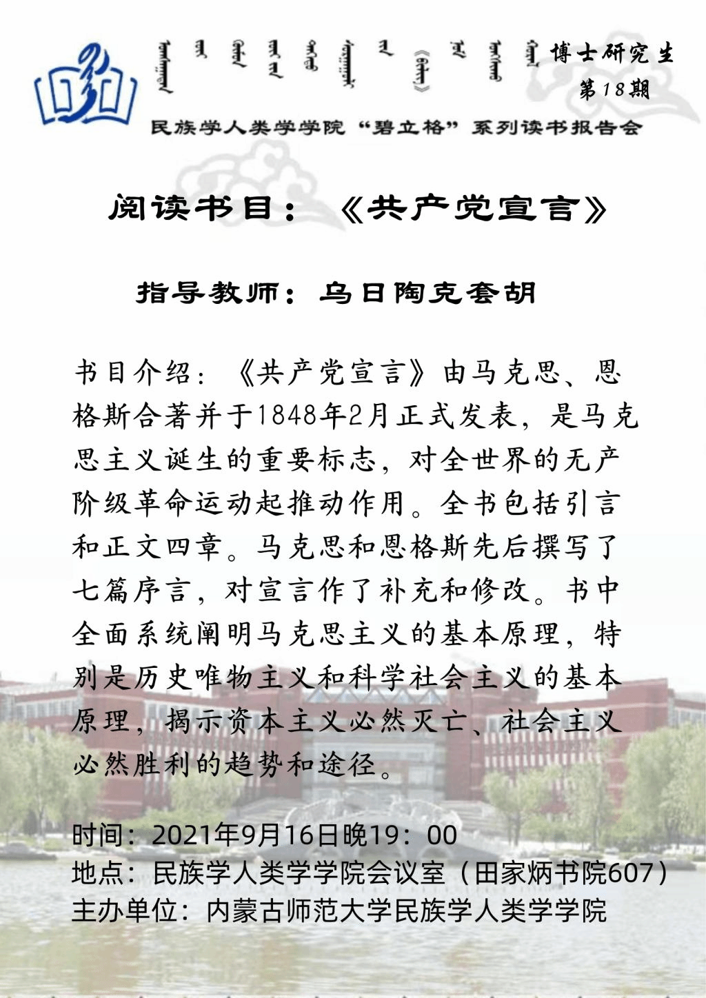 “碧立格”系列读书会博士研究生第18期预告
