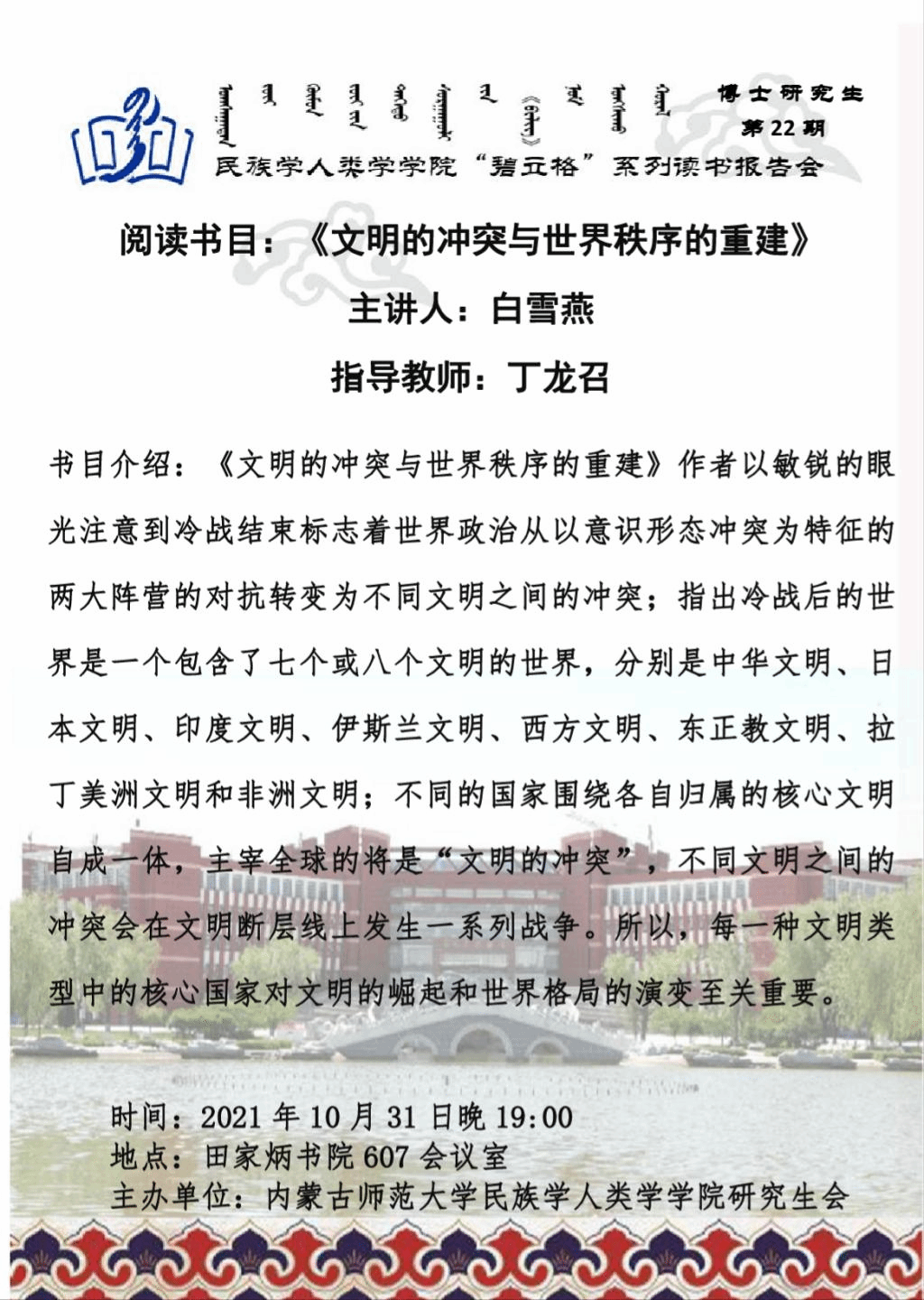 “碧立格”系列读书会博士研究生第21期预告