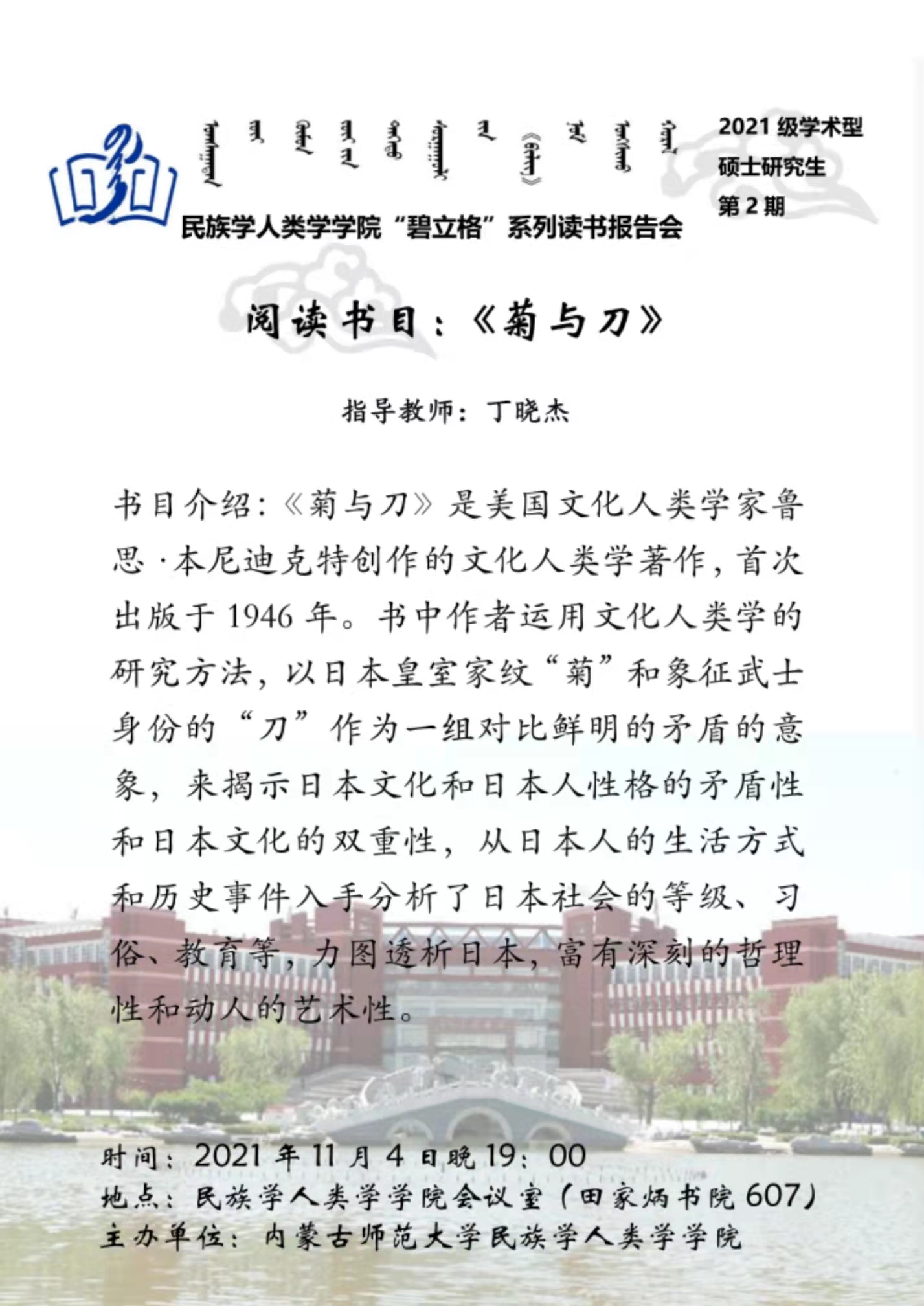 “碧立格”系列读书会2021级学术型硕士研究生第2期预告