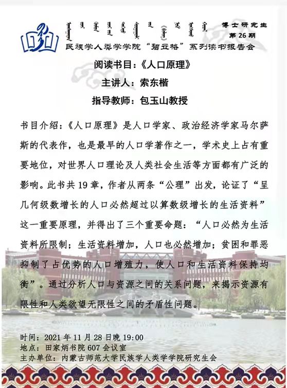 “碧立格”系列读书会民族学专业本科生第4期预告
