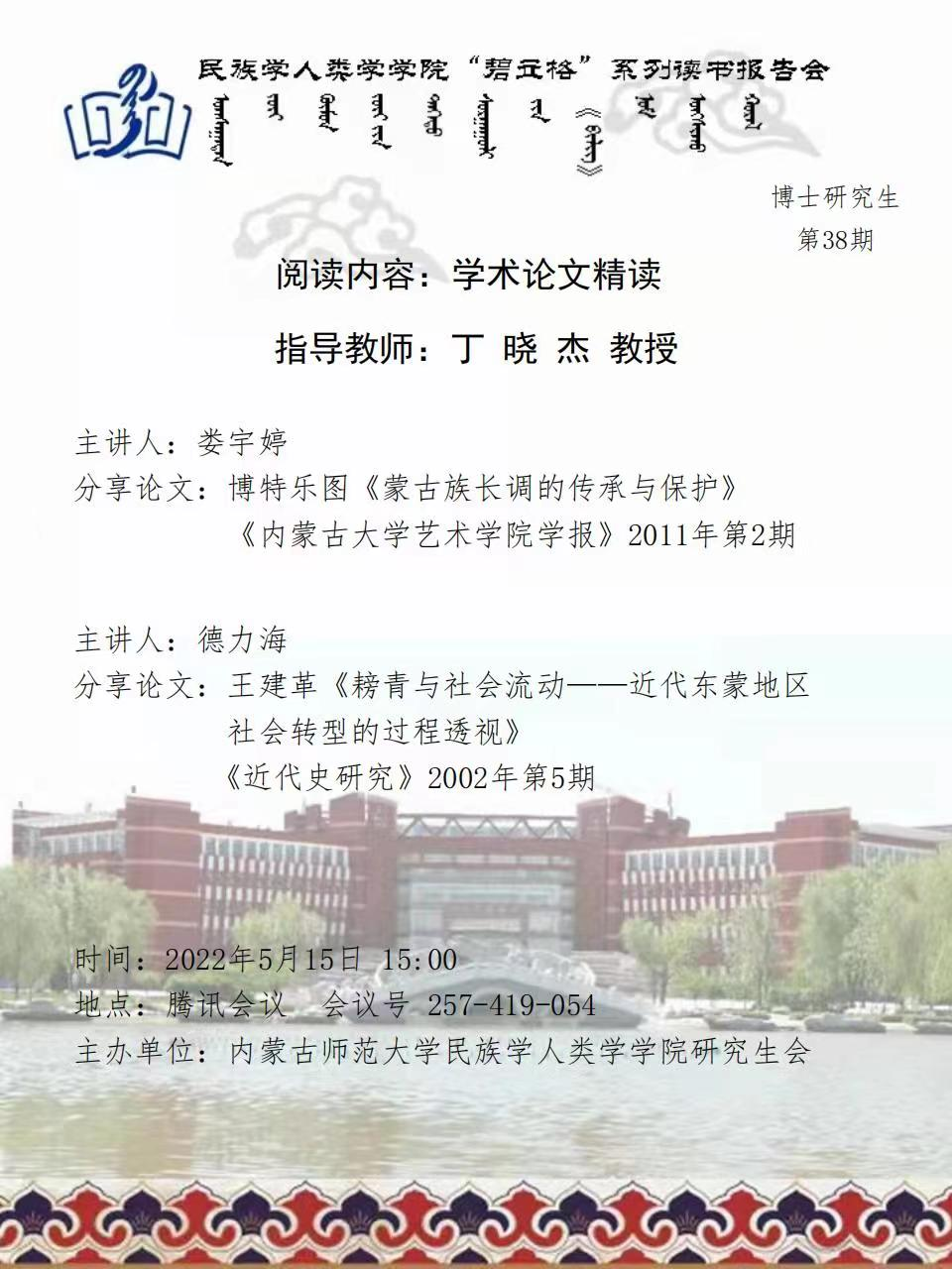 pp电子“碧立格”系列读书报告会预告 2021级博士研究生第38期