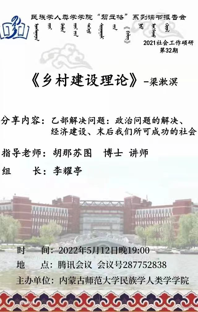 pp电子“碧立格”系列读书报告会预告 2021级社会工作硕研第32期