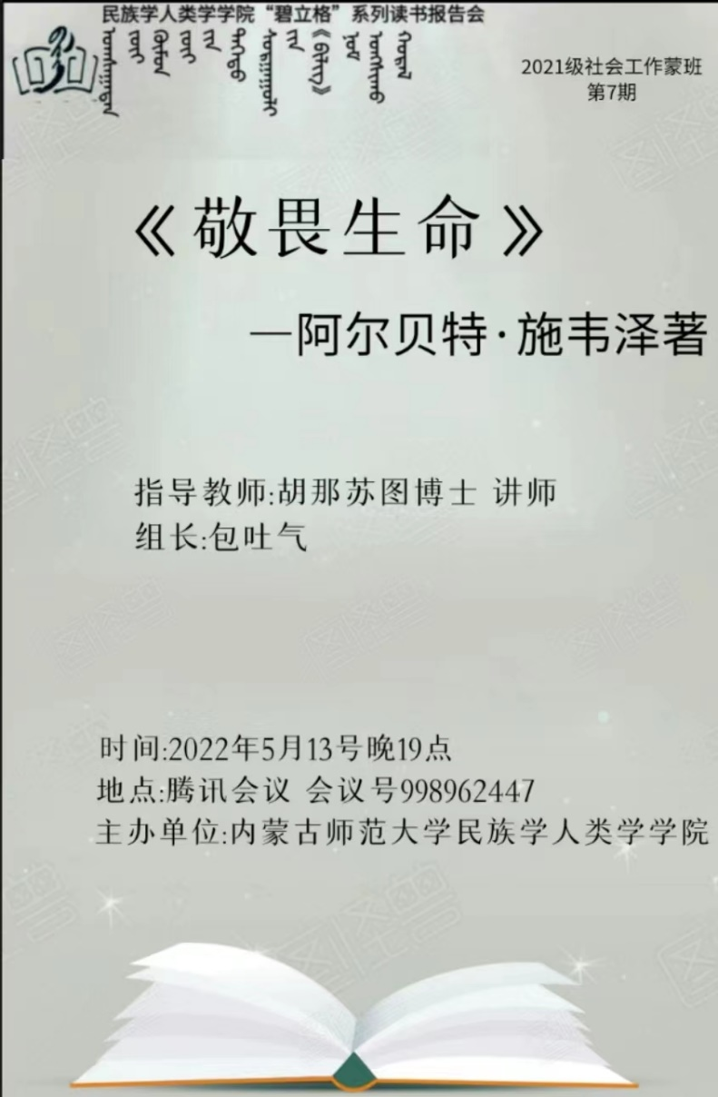 pp电子“碧立格”系列读书报告会预告 2021级社会工作蒙班第7期