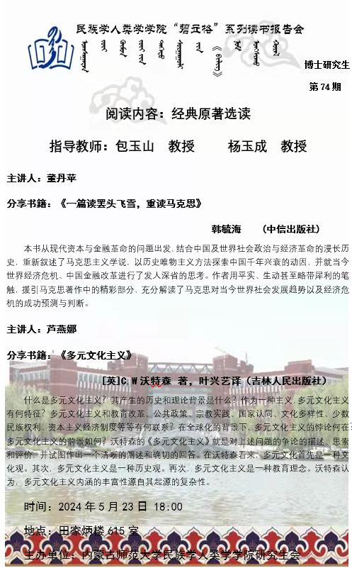 pp电子“碧立格”系列读书报告会预告博士研究生第74期