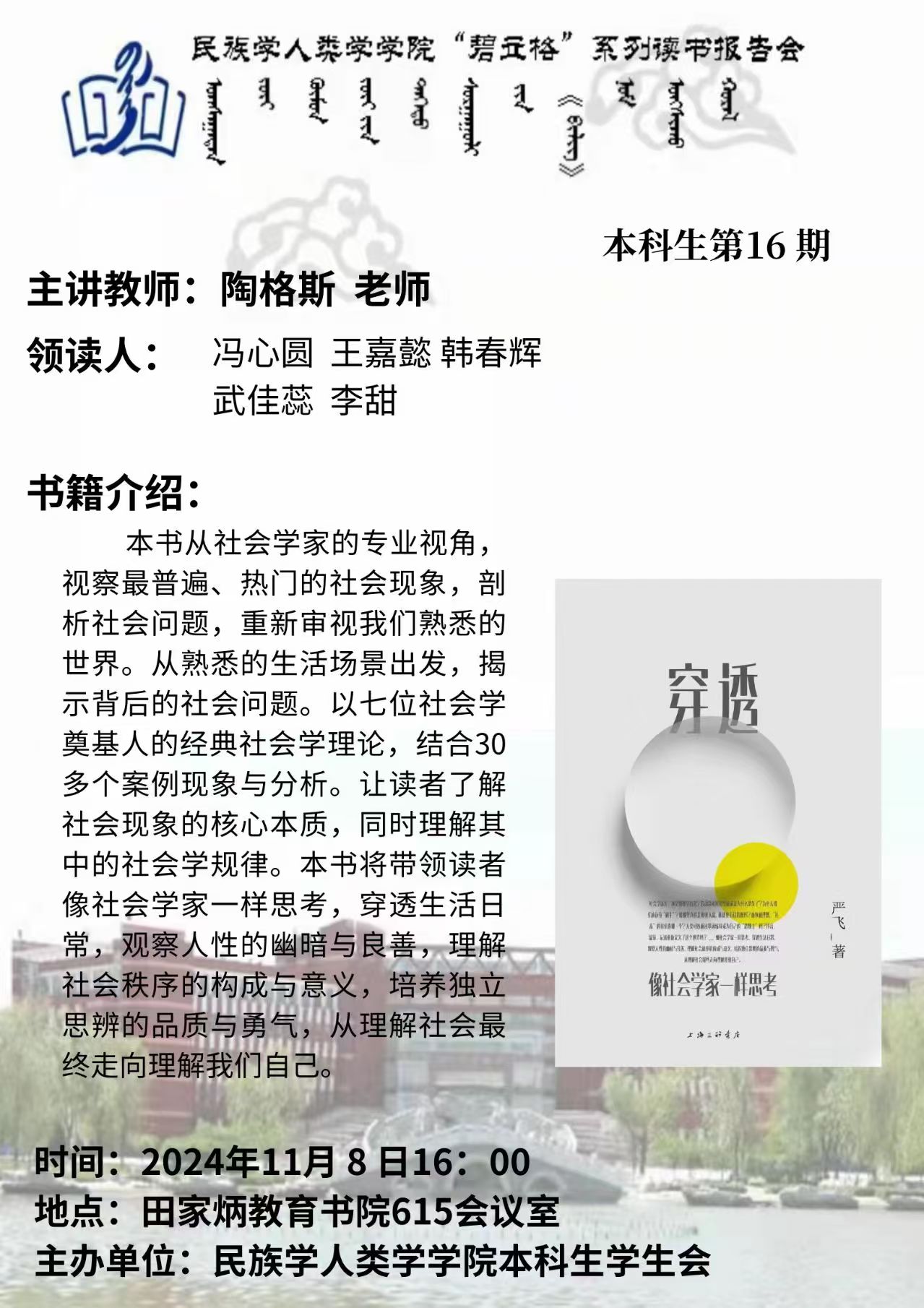 pp电子“碧立格”系列读书报告会预告 本科生第16期