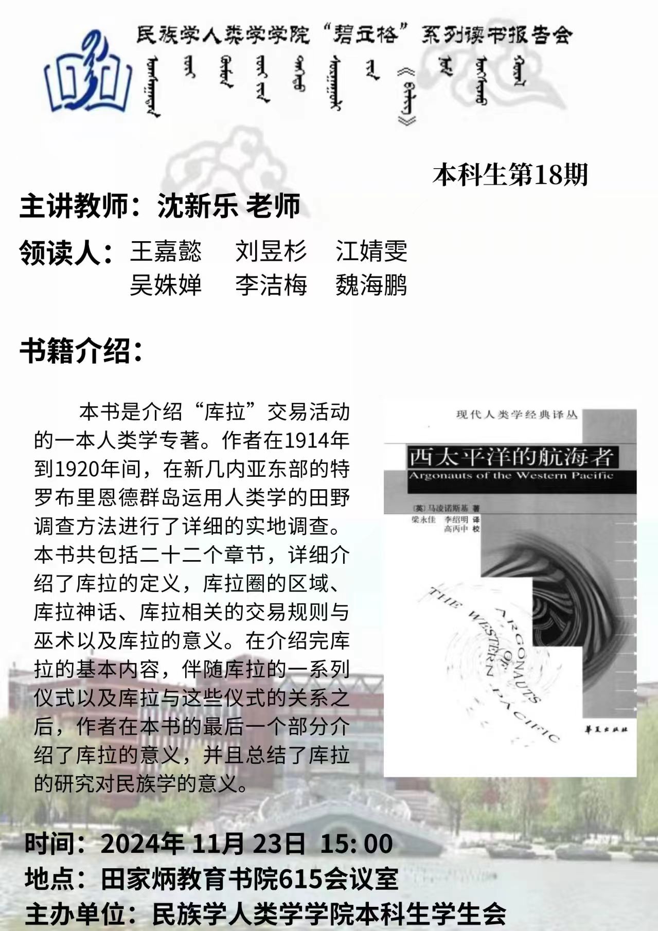 pp电子“碧立格”系列读书报告会预告 本科生第18期