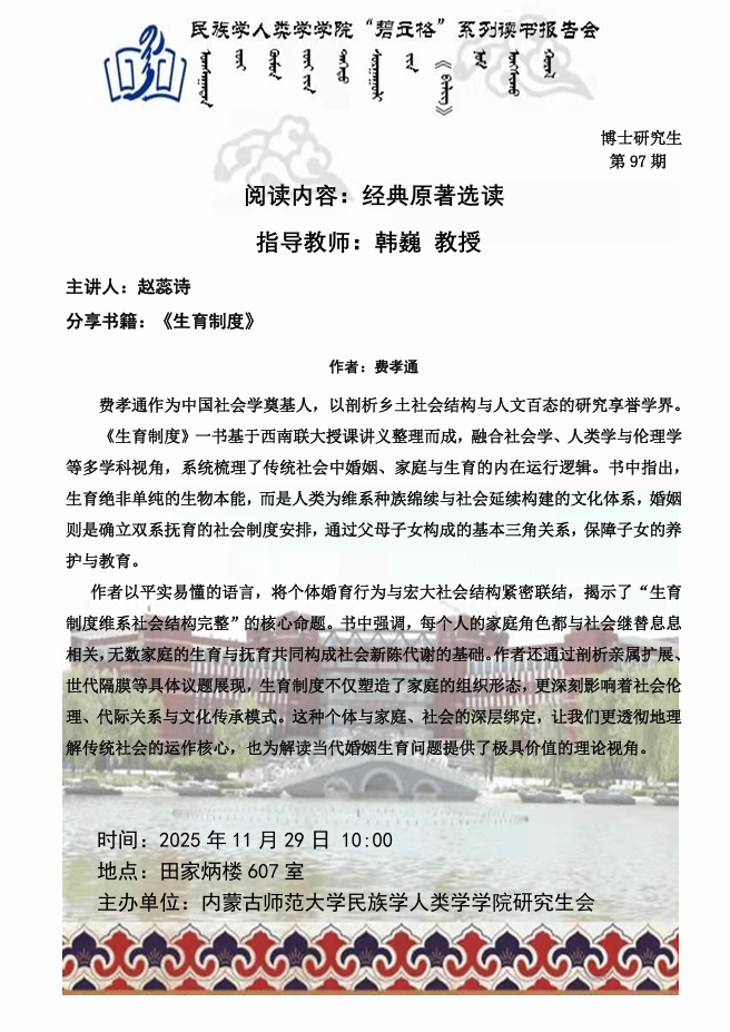 pp电子“碧立格”系列读书报告会预告博士研究生第97期