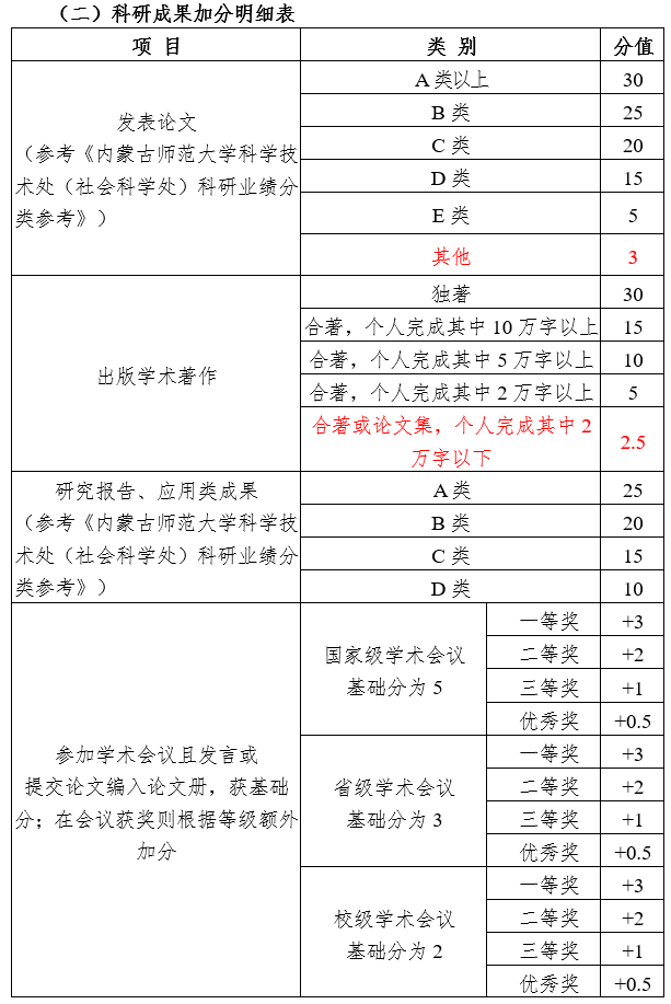 5.编写教材按学术著作分值的50%对应加分(参与编写一万字以上算起,按总字数百分比计入);译著按照学术著作对应分值的70%加分;教材、译著须为所属专业领域成果。