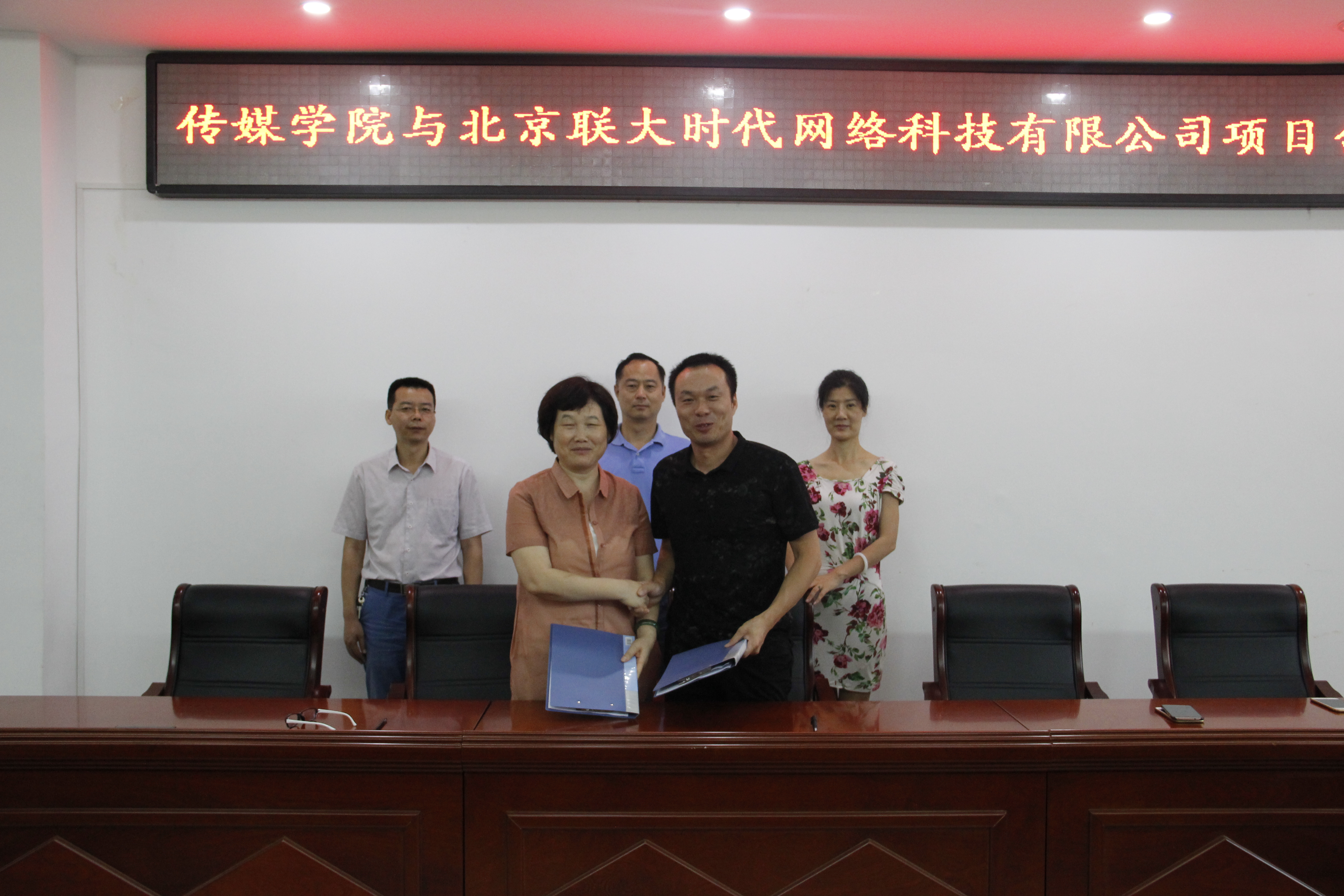 7月7日上午,万象城awc888与北京联大时代网络科技有限公司项目合作签约仪式在社科楼311会议室举行。学校校友办主任耿劲松,万象城awc888院长焦素娥,党委书记王振海,北京联大时代网络科技有限公司董事长张亚军出席签约仪式。