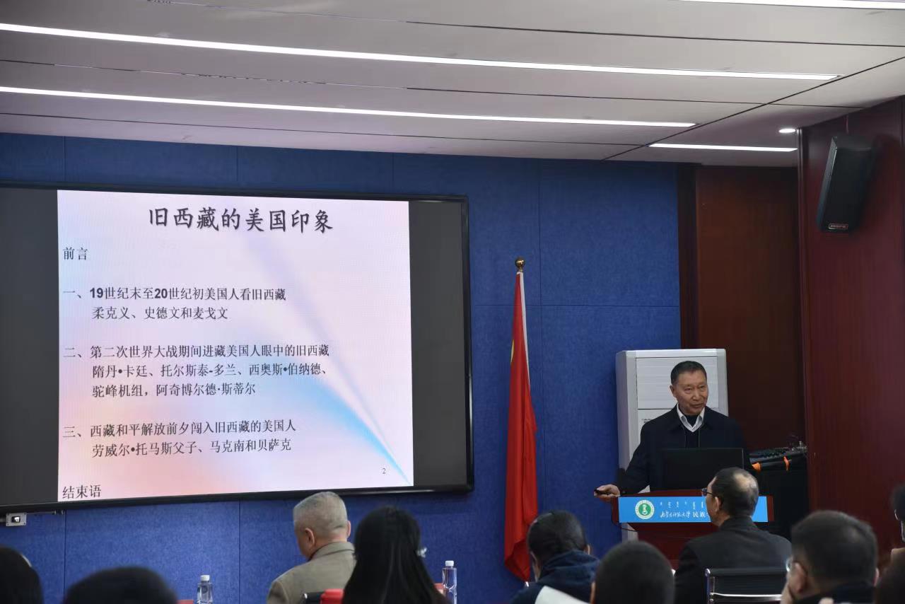 2023317日上午,中共中央党校教授、博士研究生导师、中国西藏文化保护与发展协会理事,胡岩教授应邀莅临pp电子,为pp电子官网师生做题为“旧西藏的美国印象”的专题讲座。本次讲座由pp电子、铸牢中华民族共同体意识研究基地主办,院长乌日陶克套胡教授主持讲座,我校资深教授、铸牢中华民族共同体意识研究基地首席专家纳日碧力戈教授作点评。pp电子官网党委书记包凤兰教授、副院长满达副教授、学院部分老师以及博士研究生、硕士研究生共70余人聆听了讲座。