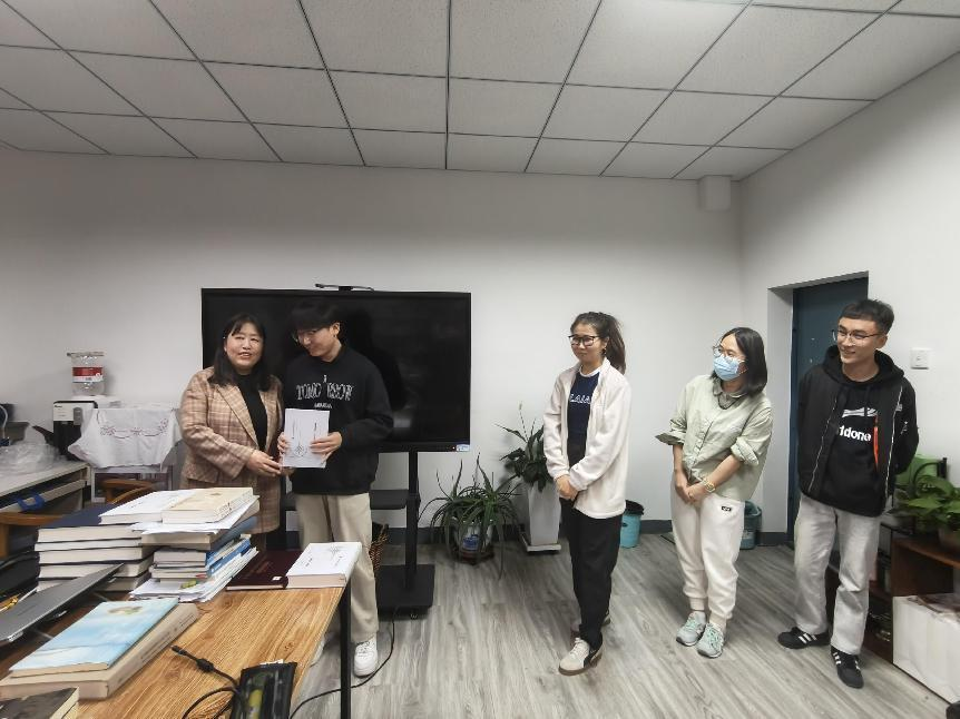 阅读分享后,开展了赠书活动,谢咏梅教授为此前在“碧立格”系列读书会中做过报告的学生赠送书籍,以此激励同学们爱读书、读好书、善读书。