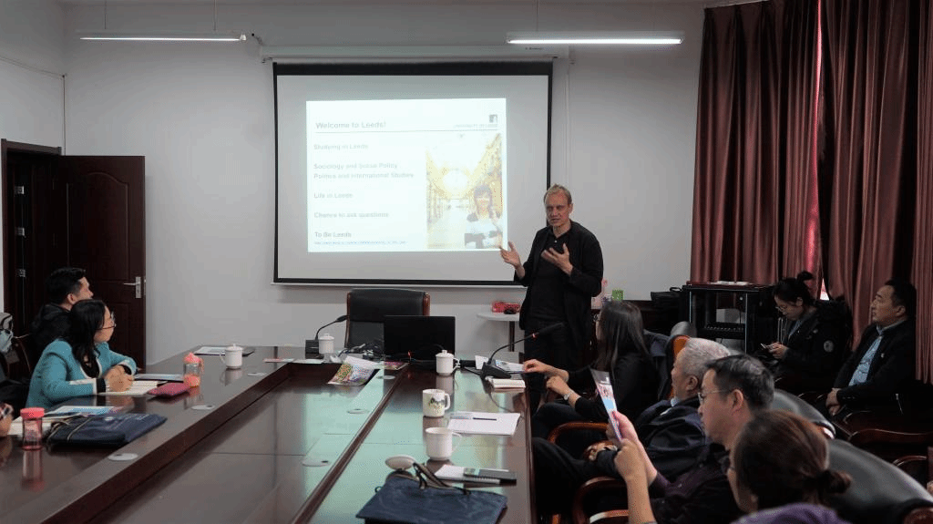 首先,诶登教授通过PPT、小视频介绍了利兹大学的环境、学术氛围、暑期学校、留学生概况和社会学学科的发展现状等信息,让pp电子官网师生充分了解了利兹大学,并产生了深深地向往之情。