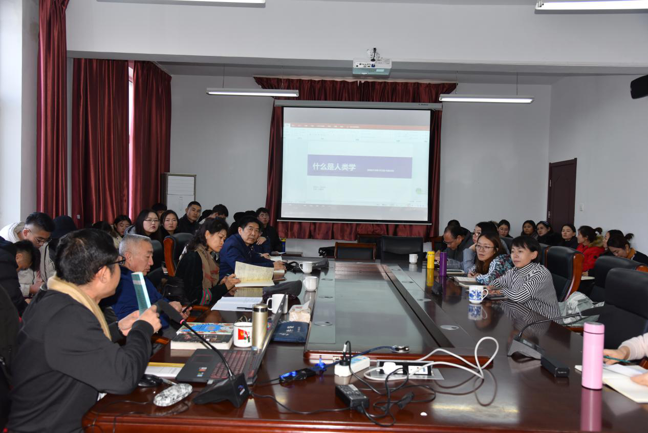为了提高pp电子官网师生对人类学的认识,增强专业学术感,pp电子于2019年12月29日下午3点在科研楼301举行第八期读书会,民族学博士苏玉明老师为大家领读了挪威人类学家埃里克森的专著《什么是人类学》一书。本次读书会由博士生李丽萍主持,院长乌日陶克套胡老师、丁龙召老师、塔娜老师、普华才让老师、张径真老师、李玉峰老师、杨冰华老师、包双成老师以及博士生、硕士生、本科生共53人参加了本次读书会。