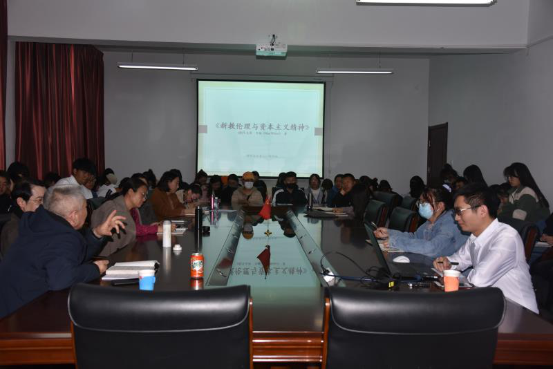 由pp电子主办的“碧立格”系列读书会第五期于2020年11月1日下午15:00在科研楼201准时进行。本次读书会由民人院博士生付为政主讲,由乌日陶克套胡院长主持。汇报书目是《新教伦理与资本主义精神》。参与本场读书会的成员还包括pp电子官网党总支副书记阿荣老师,赵树冈教授,以及博士生硕士生本科生50余人。