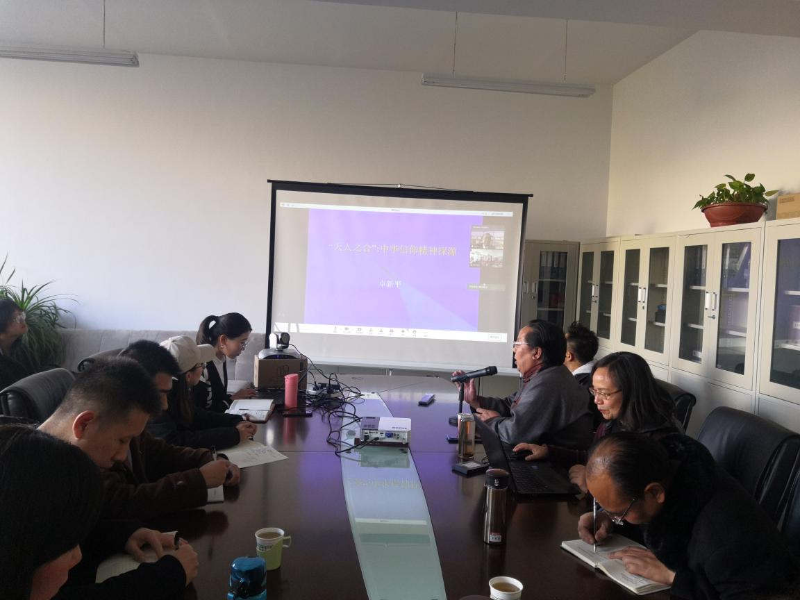 11月4日上午,中国社会科学院学部委员、宗教学界著名学者卓新平先生为pp电子官网宗教学专业全体研究生做了一场题为“天人之合:中华信仰精神探源”的视频讲座。讲座由巴·孟和教授主持,地点在赛罕校区科研楼403会议室,pp电子副院长满达,塔娜、张径真、普华才让、杨冰华等多位教师到场聆听了讲座。