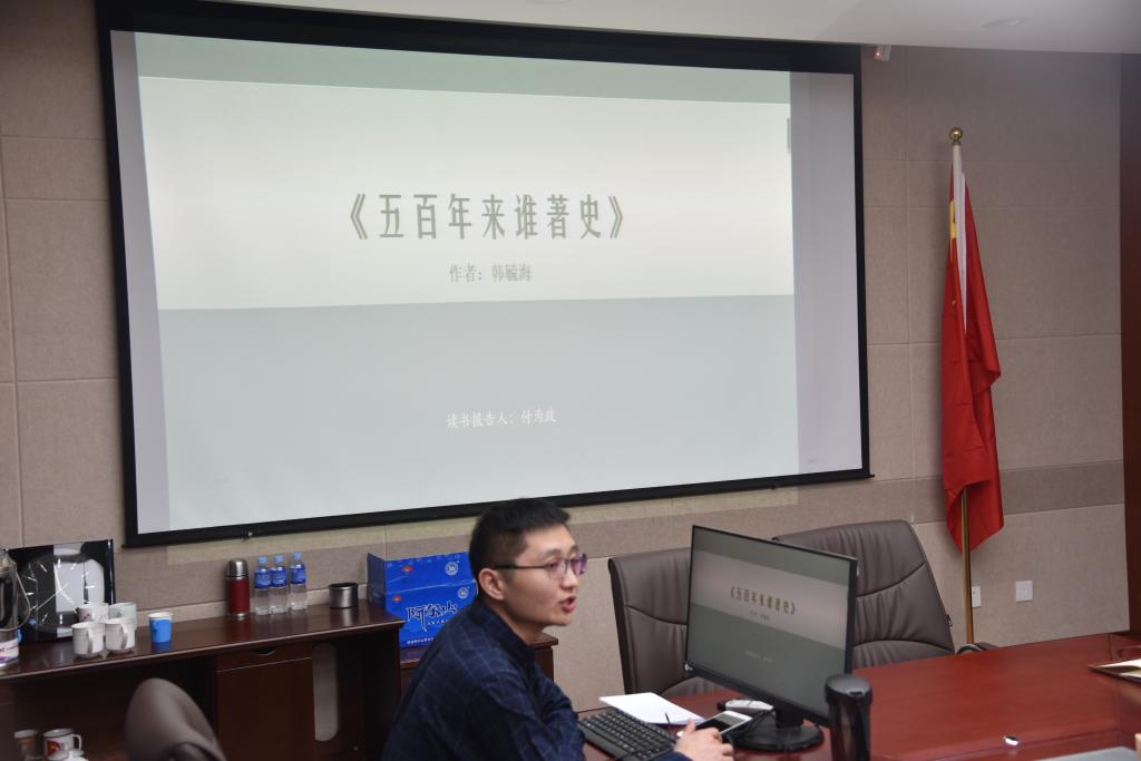 2021年3月28日19点,pp电子举行的第十二期“碧立格”系列读书报告会在田楼607会议室准时开始,本次读书报告会由pp电子官网付为政博士主讲,汇报的书目为韩毓海先生所著《五百年来谁著史——1500年以来的中国与世界》。本次读书会由pp电子官网党总支副书记阿荣主持。参与本场报告会有pp电子官网博士生导师王来喜教授,及我院博士硕士研究生30余人。