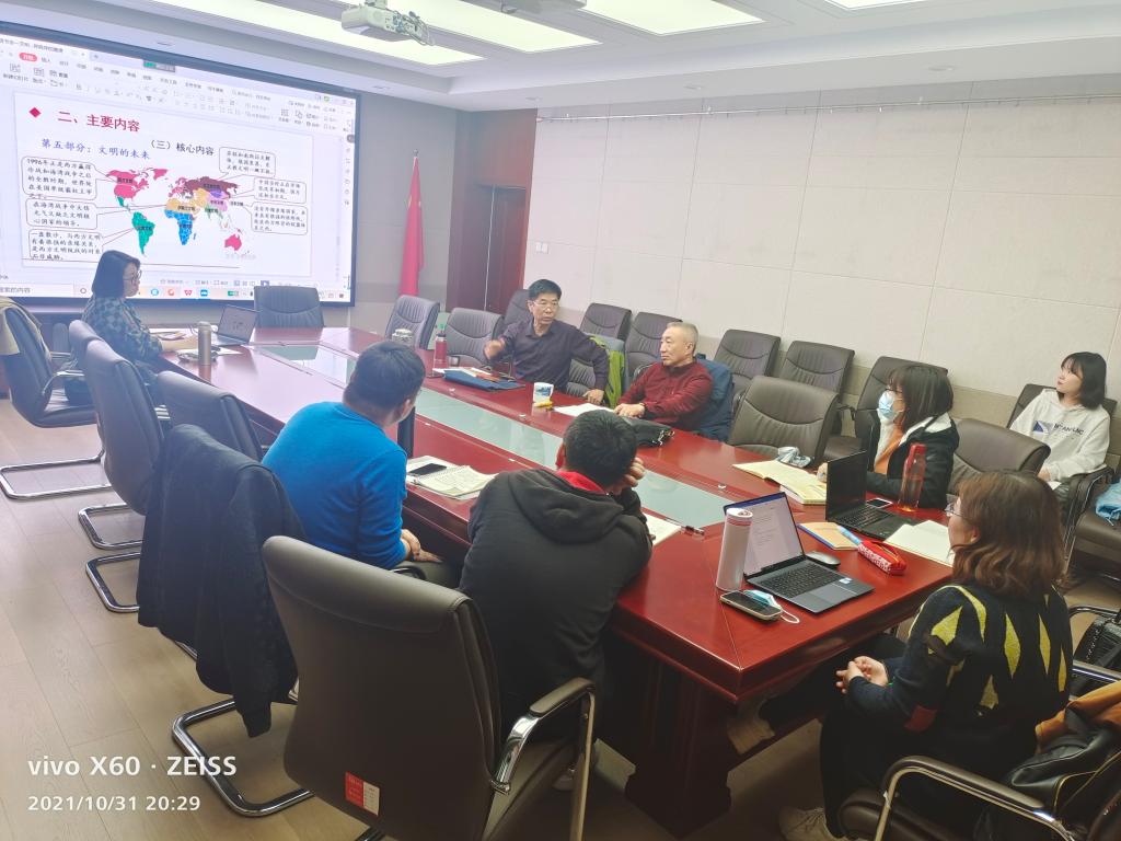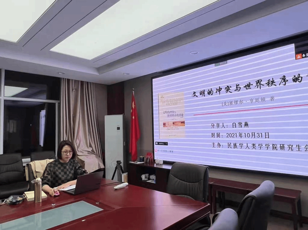 pp电子21级博士研究生第2期读书报告会于2021年10月31日晚19点在田楼607会议室举行,21级博士研究生全员参加本次报告会。本次读书报告会采取线上和线下两种方式同时进行,方便校内校外住宿的同学一并参与学习讨论。本次读书报告会的汇报书目是《文明的冲突与世界秩序的重建》,主讲人为马克思主义民族理论与政策专业博士研究生白雪燕同学。